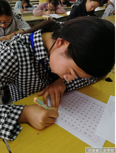 中华文化源远流长,书法是民族艺术中的一项瑰宝,彰显着中华文化的独特魅力。为传承并弘扬这一优秀的民族传统文化,增强对祖国汉字文化的了解,营造良好的学习氛围,提高学生的书写质量、书写兴趣,让学生养成“提笔即是练字时”的好习惯,河南省工业学校第十一届技能暨素质大赛--硬笔书法比赛,于四月二十五日下午四点三十分在教学楼608教室隆重举行。