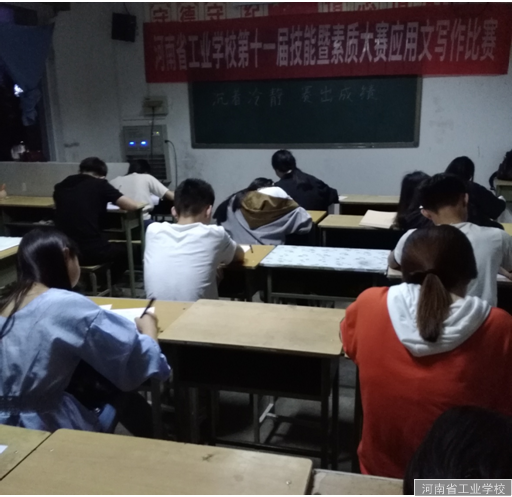 河南省工业学校第十一届技能暨素质大赛应用文写作竞赛于2018年5月3日晚7点30在老实验楼306教室举行,全校共20多名同学参加此次比赛。