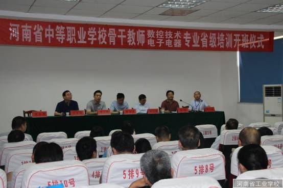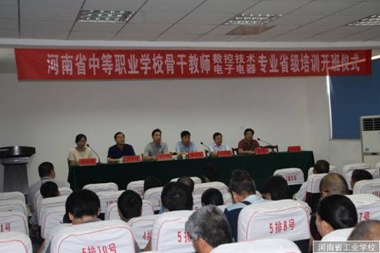 2015年7月13日上午,河南省数控技术应用专业周自斌工作室骨干教师培训班开班仪式在河南省工业学校会议室隆重举行,标志着此次为期20天的河南省中等职业学校数控技术应用及电子电器维修专业骨干教师培训活动正式启动。河南省教育厅职成处领导张家成副处长、河南省职业教研室副主任宋安国,河南省工业学校张华校长和范吉钰书记、兄弟学校河南省幼儿师范学校李立峰校长、教务处陶林李战胜主任、工作室主持人周自斌、73名培训学员出席开班仪式。