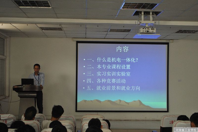 上午10点开始,有系部主任、学生科团委,班主任及机电类15级全体新生参加专业技能介绍在教学楼208开展,张校长亲临现场指导,经过曹峰、崔永远、宋丽平三位老师精心准备,利用多媒体课件,从教学设施到课程设置,从学习到就业,从技能训练到技能大赛,从教育教学开展到文明素质提升,从过去到现在,从学校到企业做了全面专业技能介绍,使同学们初步认识了自己所学的技能专业状况,为下一步及早进入学习状态做了一个好的开头