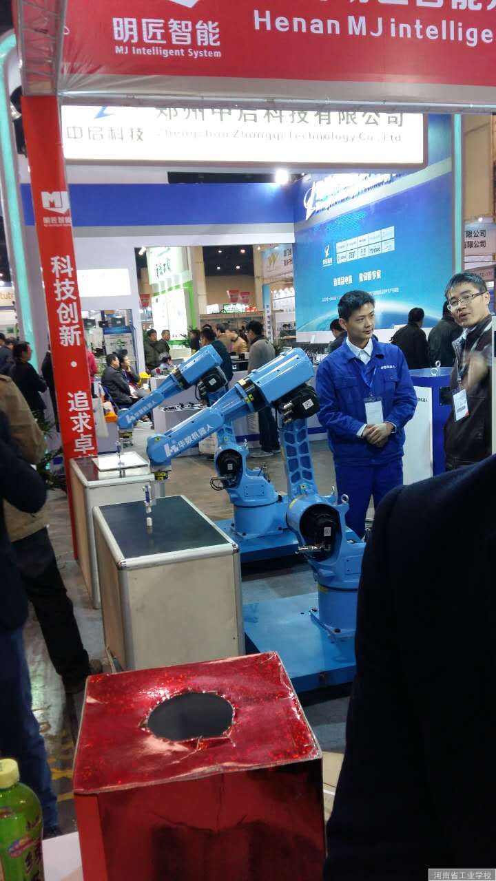 3月23日上午8点半有朱斌、张锡宪老师带队,带领全班18名同学乘坐公交汽车前往郑州东区CBD会展中心。到达会展中心办理了集体入场券,带领同学进入会场参观。有近百十家国内外厂家展出了先进的机器人设备、现代自动加工设备、3D打印技术等。参观内容有:数控机床、金属切削机床、压力成型机床和机床附件及配件、工刃具、模具,汽车制造装备技术,磨料磨具磨削产品技术;铸造(特种铸造)设备类、压铸类、铸造、压铸材料类、锻造、冲压与辅助设备及锻件类、锻压设备、工业炉类;焊接切割技术设备、五金工具、激光技术、塑胶机械及配件、表面工程、清洁设备、环保节能设备、热处理、物流设备; 动力传动及控制技术、轴承及其专用装备、流体机械、液压气动设备、空压机、风机、紧固件弹簧及设备:自动化控制、机器人、3D打印技术、电子应用系统、仪器仪表、软件及装备制造业信息化解决方案。同学们参观的积极性很高,和厂家代表热烈交谈,咨询专业问题,一直参观到中午12点。同学们对新型设备有了认识,开拓了眼界,对工业机器人有了感性认识。同学们参观后带回来了一些专业资料,对今后学习会有很大的帮助,对专业取向也会有自己的见解。