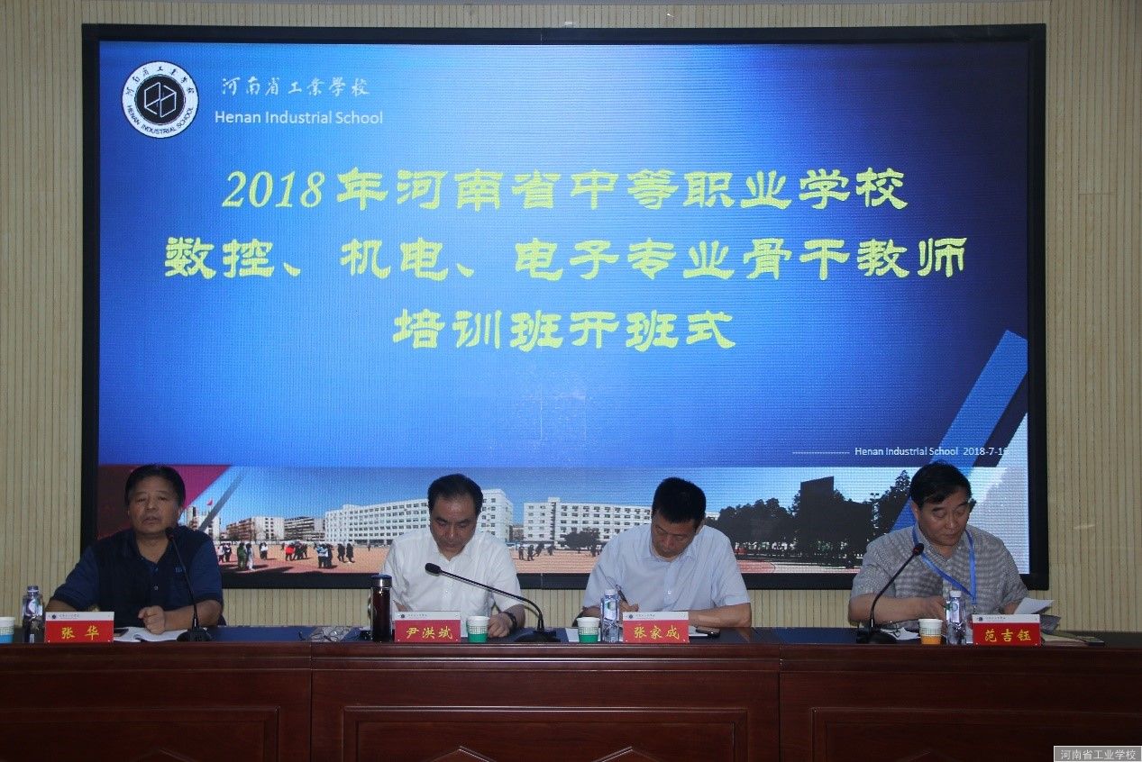 7月16日上午,2018年中等职业教育骨干教师省级培训开班典礼在我校第二报告厅举行。在我校调研的河省教育厅副厅长尹洪斌出席开班仪式并做重要讲话,河南省教育厅职成教处副处长张家成、河南省工业学校校长张华,河南省工业学校党委书记范吉钰,河南省工业学校培训基地相关负责人出席开班典礼。来自河南30余所中等职业院校的110名学员参会。典礼由河南省工业学校党委书记范吉钰主持。
