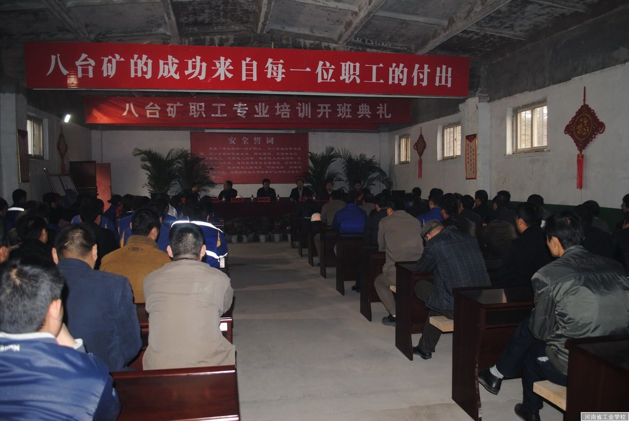 11月19日上午,安钢集团舞阳矿业公司八台矿会议中心隆重举行了“八台矿职工专业培训班开班典礼”,安钢集团舞阳矿业公司党委书记韩绿林、副总经理邱合祥、八台矿矿长胡宾 、河南省工业学校党委书记范吉钰、机电系主任周自斌、材料系主任毛志刚、教师曹峰等出席了开班典礼。典礼上我校党委书记范吉钰和舞阳矿业公司党委书记韩绿林分别致辞,范书记对安钢集团舞阳矿业公司与河南省工业学校校企合作的启动表示了祝贺,同时简单介绍了学校的基本情况,最后要求系部精心组织,任课教师认真准备,圆满完成2012级舞矿班的教学任务;韩书记致辞时首先对河南省工业学校有关领导的光临表示欢迎,介绍了企业的历史和现状,要求职工珍惜本次难得的学习机会,认真掌握专业知识,为今后的工作打下一个良好的基础。