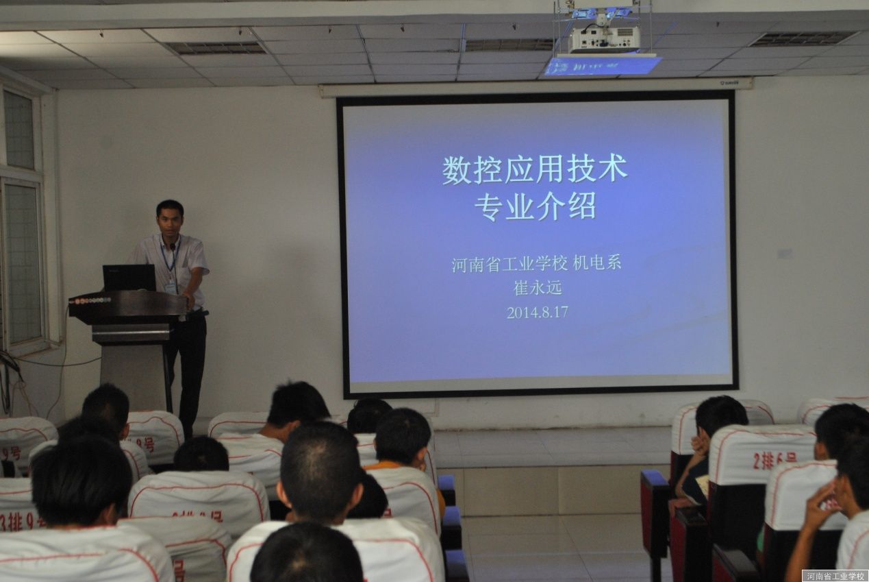 数控专业教师崔永远在为学生作专业介绍