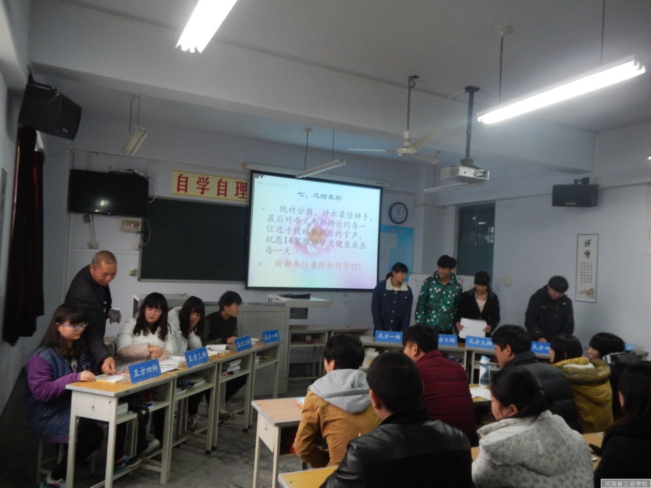 本次辩论赛活动十分成功,老师准备充分,整个教学设计过程合理,熊老师展示出了其一定的教学经验和技巧,充分体现以教师为主导、以学生为主体、课堂教学与实践相融合的职业教育理念;教学课件新颖,参与观摩的老师对这次活动反响也较好。本次课根据呼叫专业的需要,注重培养学生的沟通能力,注重引导学生进一步的深思,让学生学会深入分析、深度思考,明确知识与实践是不可分割的,让在场的老师深受到课改的必要和启发。另外,在组织教学内容、教法的选用、教学目标的确立、教学环节的设计上对大家有很大的启迪。不足之处主要是学生事先准备相对而言不够充分,在辩论中也出现词不达意的问题,临场应变能力不足,在出现一些突发事件时不知道如何处理,需要进一步提高学生的语言表达和应变能力,增强凝聚力等。