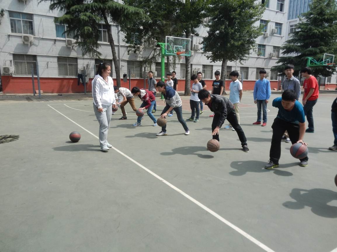 为了推进体育课堂教学,提高体育教学质量,经过精心设计,认真准备,2015年5月8日上午第3节课,基础部张花卉老师在篮球场上上了一堂《行进间运球》公开课,全体基础部老师现场观摩与指导。