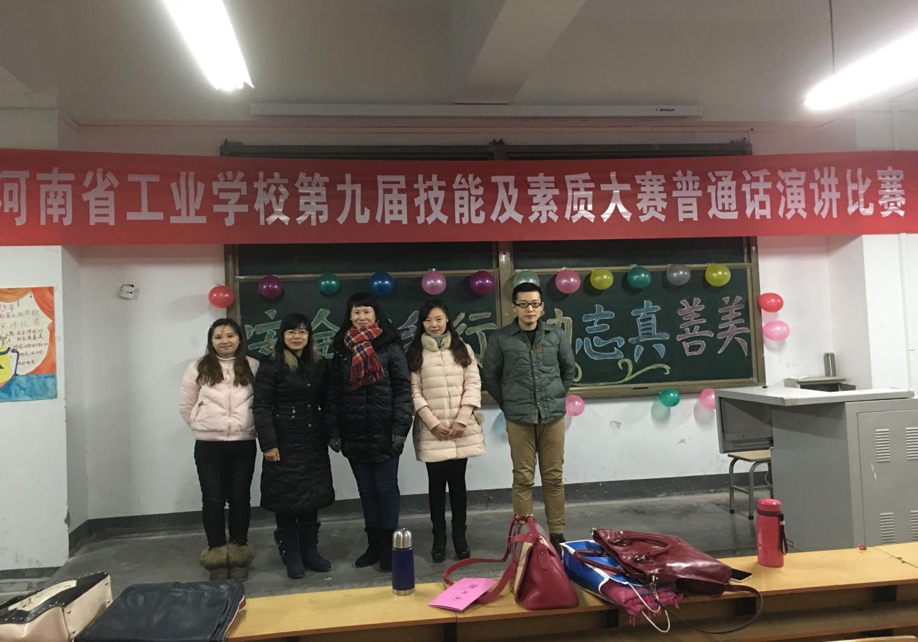 2015年12月1日下午,河南省工业学校第九届技能及素质大赛揭开帷幕,经过三个小时的激烈竞争,普通话演讲比赛圆满结束。本次比赛的主题是“安全伴我行,励志真善美”,来自全校共91名选手分班在两个赛场参加了比赛,基础部语文教师杜志敏、吴灵芝、孙捷、梅雪莹、玉旖旎担任评委。