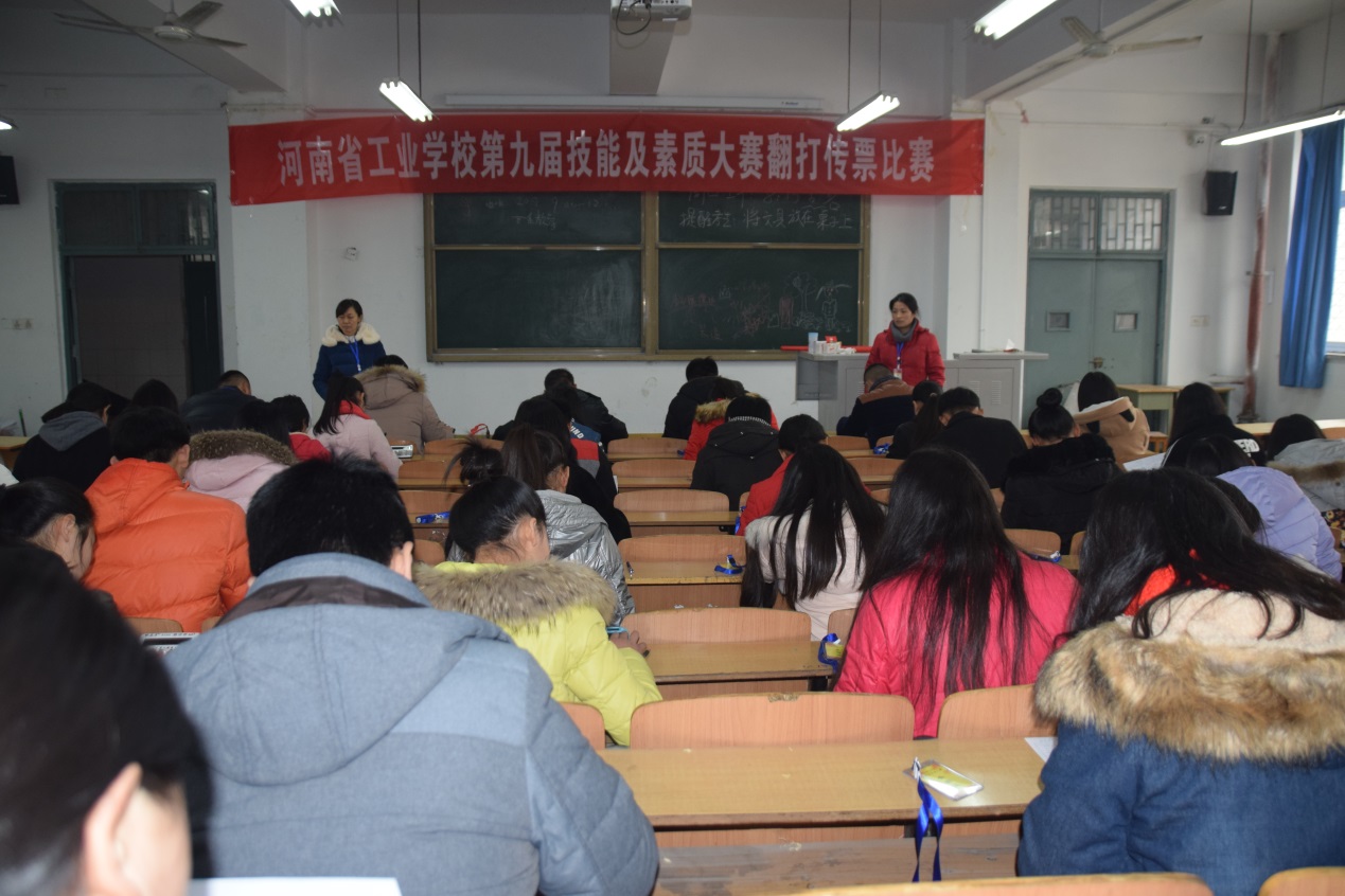 为响应我校职业技能大赛的举办,进一步提高会计专业学生的职业技能。2015年12月22日,由经管系承办的会计专业技能大赛——翻打传票比赛在108教室正式拉开帷幕。河南省工业学校第九届技能及素质大赛传票翻打比赛项目随着张枚老师宣布比赛开始,参赛的47名学生经过紧张有序的竞赛,传票翻打比赛圆满结束。