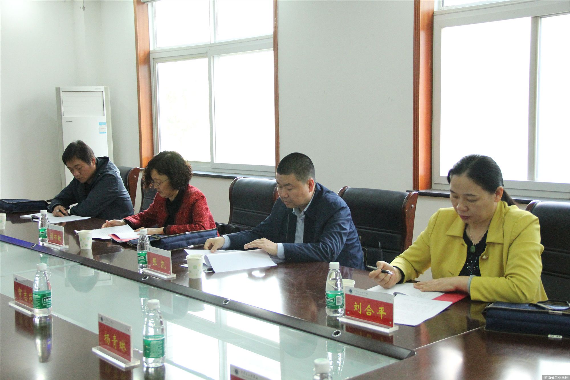 4月17日上午,由河南省医药卫生学校副校长阚书敏、河南省学生资助管理中心刘合平、河南信息工程学校学生处处长张凯、驻马店财经学校副科长蔡彦兵一行四人组成的省属中职学校学生资助工作考评专家组到我校考评复查学生资助工作开展情况。张华校长代表学校对莅临我校检查指导资助工作的考评组专家表示热烈欢迎,并向专家组做工作汇报。