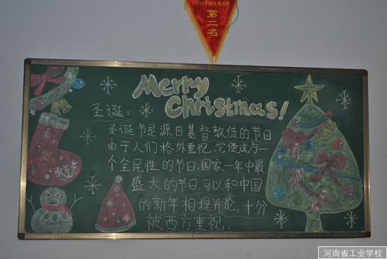 临近圣诞节和元旦节,为进一步烘托节日气氛,各班利用教室后黑板制作了形式各样、精彩纷呈的黑板报。